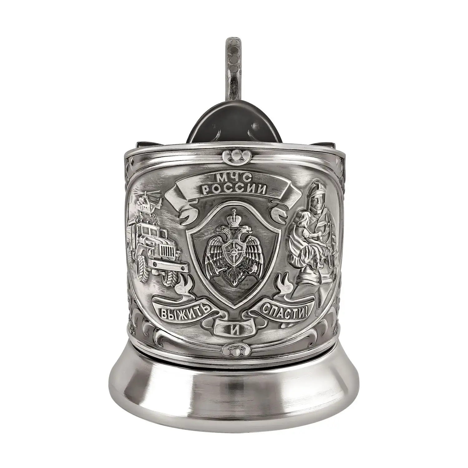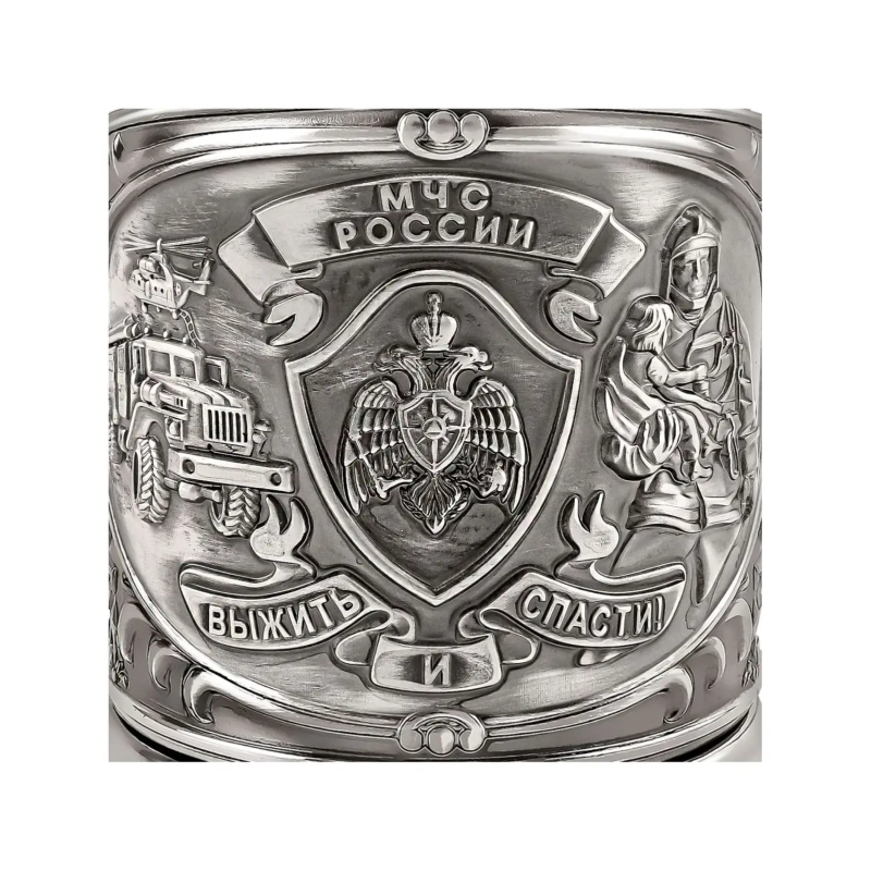 Подстаканник никелированный с чернением '"МЧС" 10*11*9 см
