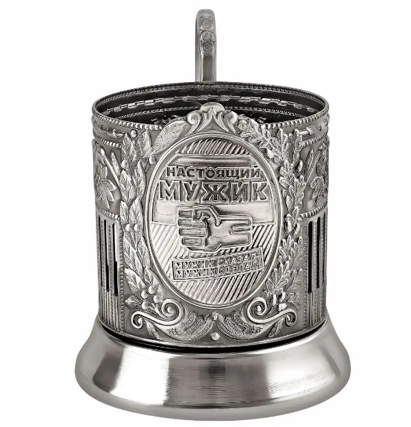Подстаканник никелированный с чернением "Настоящий мужик" 10*11*9 см