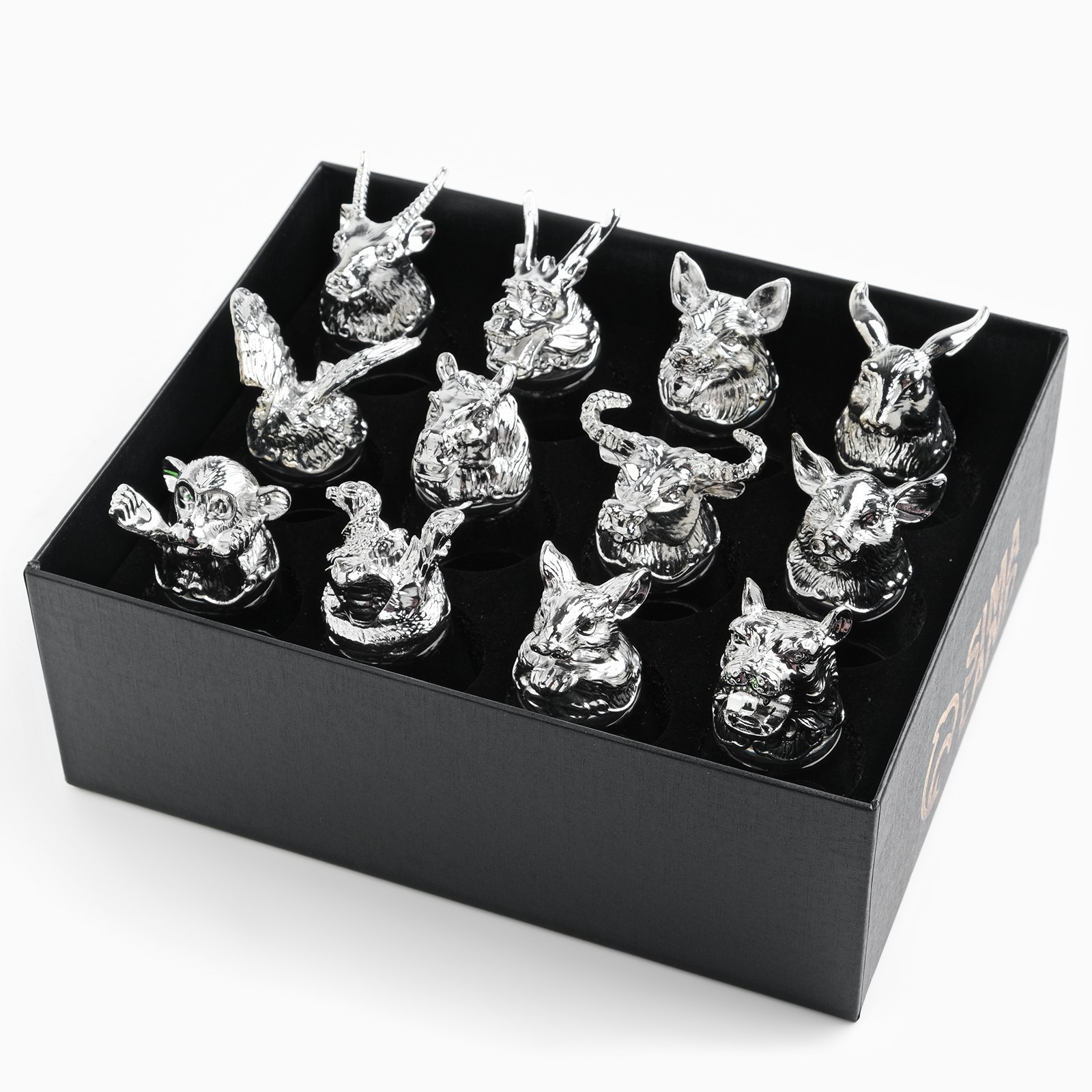 Набор выполнен под двенадцать знаков зодиака, каждый из которых принадлежит определенному животному. Стопки будут прекрасно сочетаться с любой сервировкой и могут использовать как для повседневного использования, так и для особых случаев. Кроме того, стеклянные прозрачные рюмки легко моются и не подвергаются коррозии.