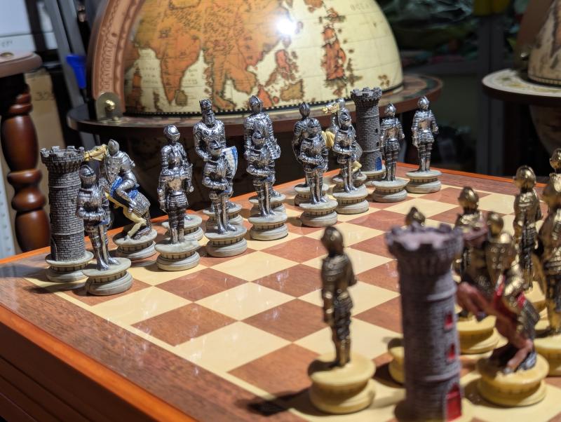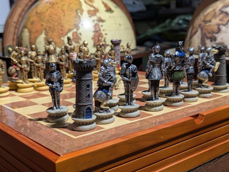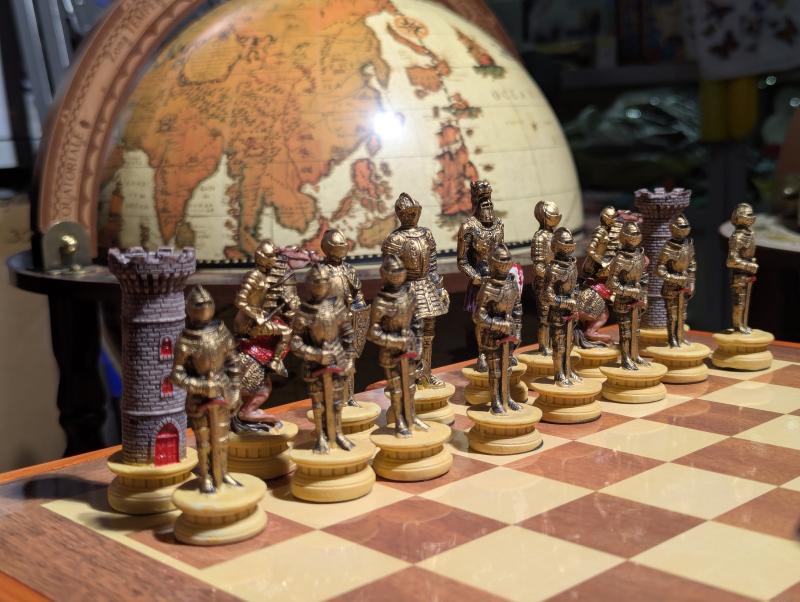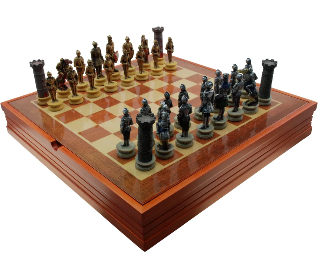 Шахмат «Рыцари» из полистоуна с деревянной доской.