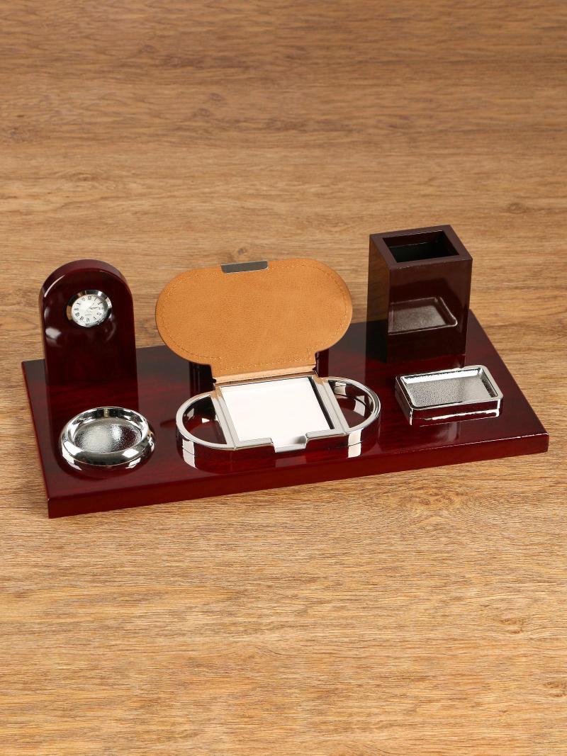 Набор настольный, органайзер 6 в 1 с визитницей и часами 13,5*40,5*21,5 см