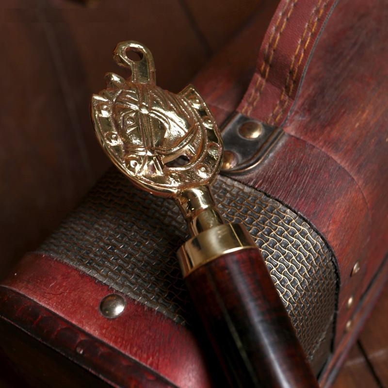 Ложка для обуви с художественным оформлением — это практичный аксессуар с детализированной ручкой в форме лошади внутри подковы. Изготовлена из латуни с деревянными вставками, имеет длину 52 см. Золотисто-коричневое покрытие создает эффект антикварного изделия. Узкая ложка шириной 2.5 см легко проникает в труднодоступные участки обуви.