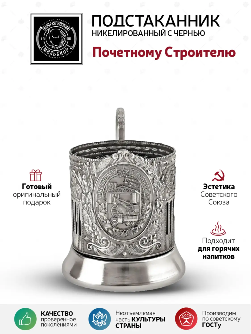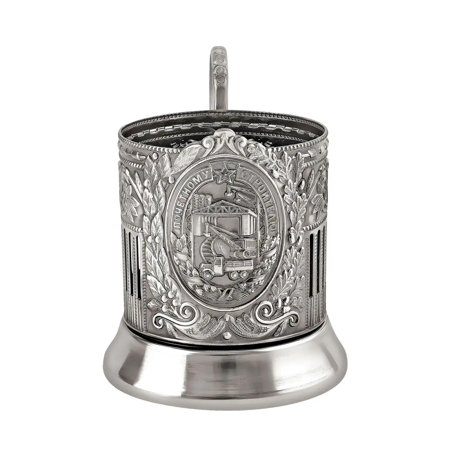 Подстаканник никелированный с чернением "Почетному Строителю" 10*11*9 см