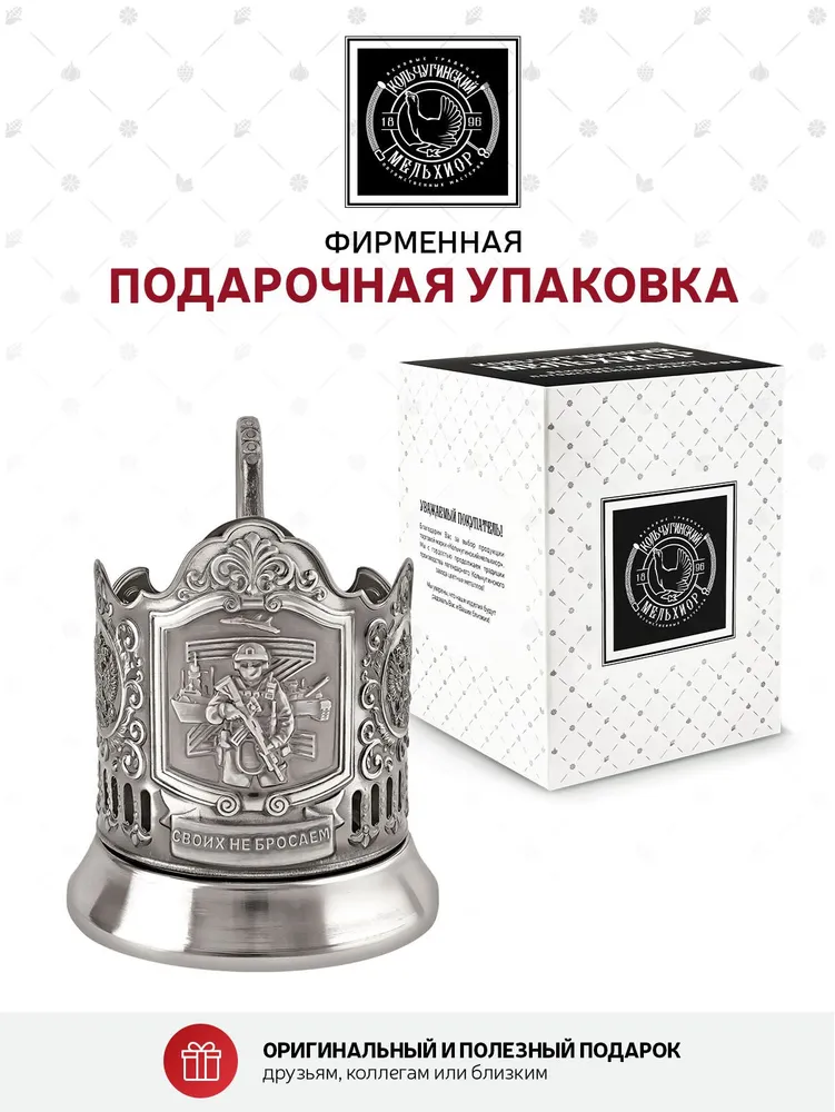 Подстаканник никелированный с чернением "Солдат СВО" 10*11*9 см