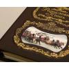 Обложка выполнена из финского картона обтянутого натуральной кожей. Тиснение золотом. Лицевая сторона книги украшена выпуклой вставкой и изображением русской тройки, которое меняется на ваше персональное заглавное фото обложки книги.