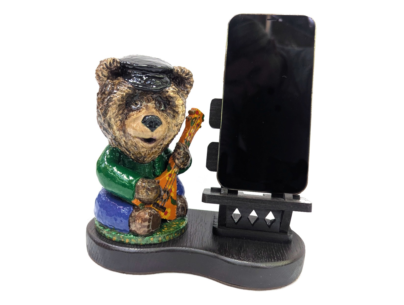 Подставка для мобильного телефона "Мишка" - отличный вариант для безопасного и практичного хранения вашего устройства. Она поможет вам организовать рабочее пространство и станет его эстетичным и функциональным украшением! Настольный держатель выполнен из дерева. Материал отличается особой прочностью, экологичен, а еще дерево очень устойчиво к повреждениям и не теряет своей красоты даже при интенсивной эксплуатации. Большая фигурка Мишки выполнена из бука, композитной основой вручную мастерами компании - это настоящая ручная работа, поэтому такая подставка станет изысканным декором для вашего интерьера.Она пригодится не только дома (прихожей и коридоре, спальне, рабочем кабинете), но и в офисе. За счет своего красивого и милого исполнения держатель легко впишется в народный, русский стиль.