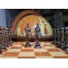 - Игральные фигуры изготовлены из металла, а доска из благородного дерева, что придает шахматам не только устойчивость, но и роскошный вид.