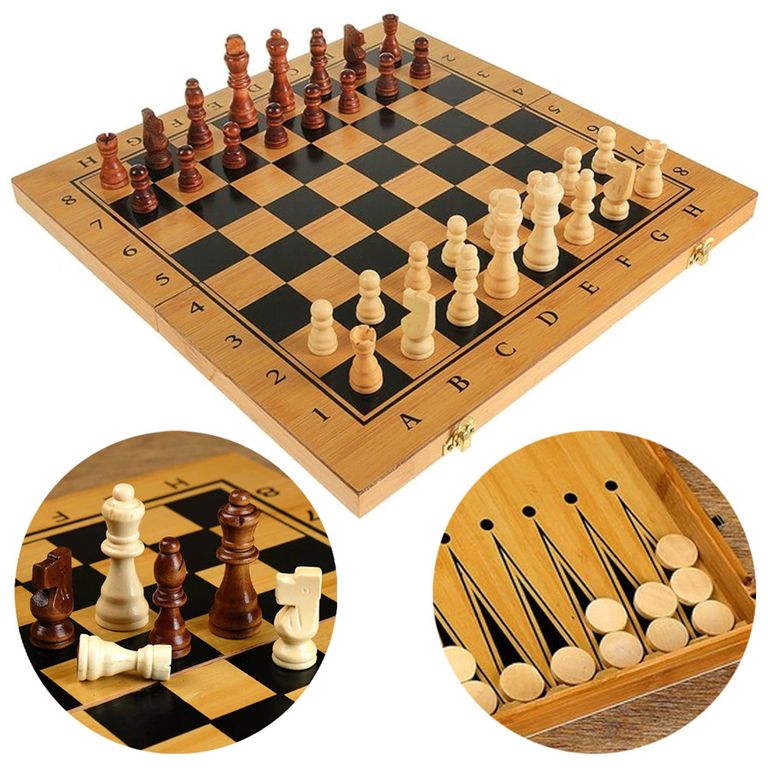 Набор деревянных игр 3-в-1 с доской из бамбукового дерева (шахматы + шашки + нарды).